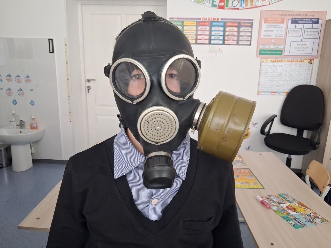 Вторая часть урока была практической. Ребята с интересом отрабатывали навык одевания противогазов.